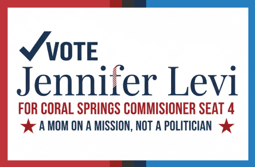 Jennifer Levi has proudly called Coral Springs home since 2014. She is a “mom on a mission, not a politician”. As a dedicated mother of three, a longtime community advocate, and an HR Director for a local small business, Jennifer’s life has been shaped by her deep commitment to this city and its residents. She is running for Coral Springs City Commissioner, Seat 4, to bring practical, people-focused leadership that reflects the values and priorities of our community.